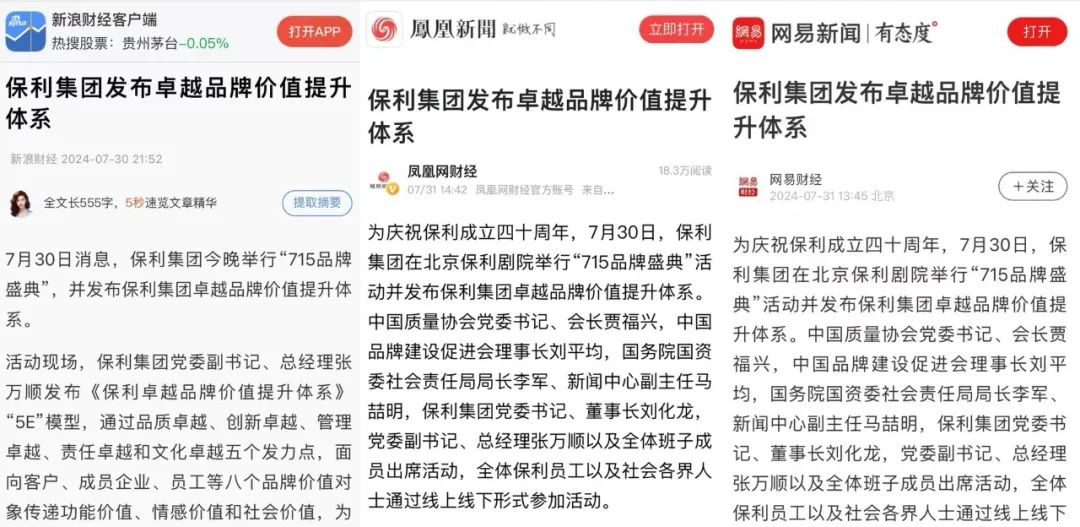 聚焦品牌盛典活動盛況。人民日報發(fā)布整版版面《有為跨山海?卓越向未來》,凸顯保利堅守初心、服務(wù)家國的企業(yè)標(biāo)識;人民網(wǎng)進行首頁焦點圖輪播并發(fā)起“7·15品牌盛典”云直播。此外,光明日報、經(jīng)濟日報、中國日報、中國青年報等數(shù)十家權(quán)威主流媒體和鳳凰新聞、網(wǎng)易新聞、新浪財經(jīng)各類行業(yè)媒體累計曝光數(shù)據(jù)近3000萬,充分肯定了保利胸懷“國之大者”,帶動行業(yè)發(fā)展的引領(lǐng)性、示范性。