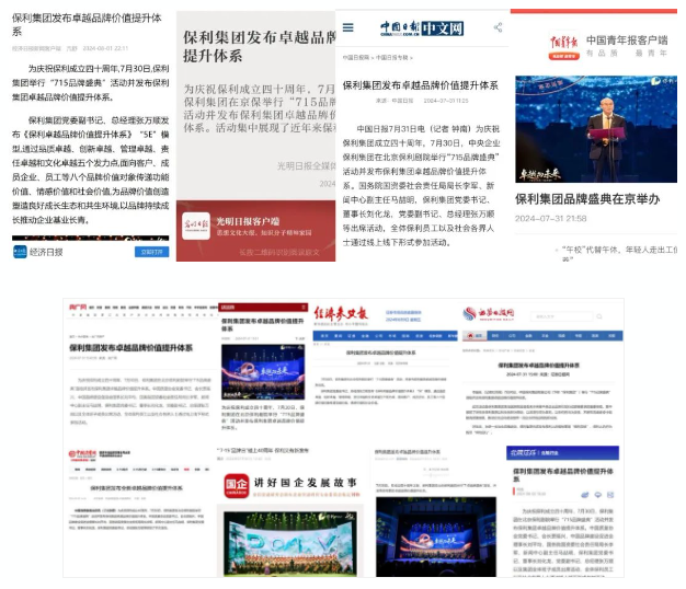 圍繞保利成立四十年,各類權(quán)威主流媒體和行業(yè)媒體密集報道,以多元視角呈現(xiàn)保利改革發(fā)展、品牌建設(shè)的諸多成效,形成全網(wǎng)聚焦的傳播合力。