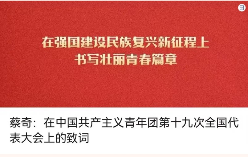 開幕式上,蔡奇代表黨中央致詞。蔡奇在致詞中說,在黨中央堅強領(lǐng)導(dǎo)下,團十八大以來,共青團堅持以習(xí)近平新時代中國特色社會主義思想為指導(dǎo),認真貫徹習(xí)近平總書記關(guān)于青年工作的重要思想,全面從嚴管團治團,團的政治性、先進性、群眾性不斷增強,引領(lǐng)力、組織力、服務(wù)力不斷提升。
