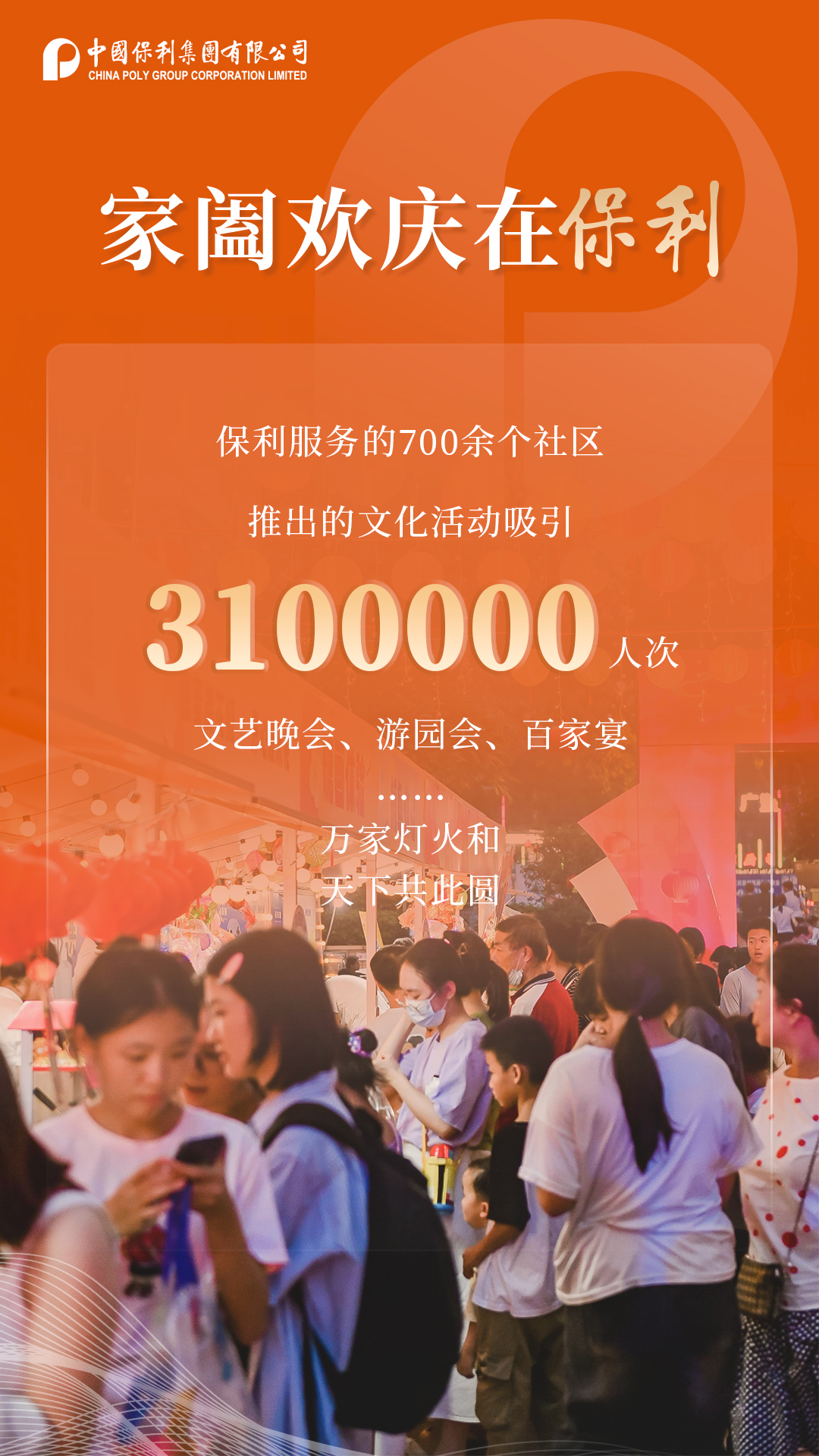 中秋遇上國(guó)慶,山河聚集人氣,透過(guò)“黃金周”這扇窗,極大彰顯了中國(guó)經(jīng)濟(jì)的煙火氣息、澎湃動(dòng)能。作為國(guó)民經(jīng)濟(jì)向好發(fā)展的主力軍,保利集團(tuán)為消費(fèi)增長(zhǎng)、市場(chǎng)繁榮提供新動(dòng)力。保利集團(tuán)發(fā)布“黃金周”公共服務(wù)成績(jī)單,以責(zé)任書(shū)寫(xiě)奮斗姿態(tài),以擔(dān)當(dāng)保障萬(wàn)里通途,以品質(zhì)服務(wù)美好生活。