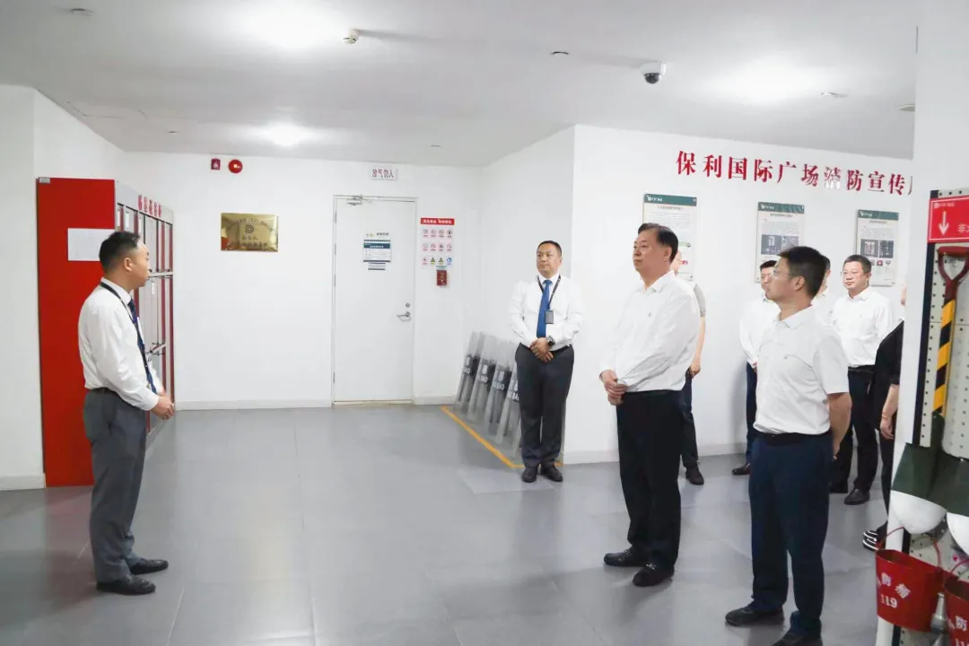 在保利國際廣場,劉化龍一行先后檢查了微型消防站、消防中控室、配電室等重點部位,詳細了解了寫字樓經(jīng)營管理和安全應(yīng)急等工作情況。劉化龍強調(diào),要認真落實全國安全生產(chǎn)會議精神,針對租戶較多、責任分散的特點,加強安全生產(chǎn)管理。一是落實源頭保障措施。健全完善安全管理制度,做好重要設(shè)備設(shè)施的維護保養(yǎng),針對租戶業(yè)態(tài)實際明確安全生產(chǎn)職責。二是落實過程控制措施。加大安全生產(chǎn)檢查力度,落實隱患整改閉環(huán)管理要求,加強餐飲、有限空間等重點部位以及外來作業(yè)人員的安全監(jiān)管,堅決避免“以包代管”“包而不管”現(xiàn)象發(fā)生。三是落實應(yīng)急管理措施。高度警惕汛期、節(jié)假日等重點時段的安全風險,及時進行風險提示和安全教育,健全完善應(yīng)急預(yù)案并加強培訓演練,嚴格執(zhí)行值班值守和信息報告制度,確保安全平穩(wěn)運營。