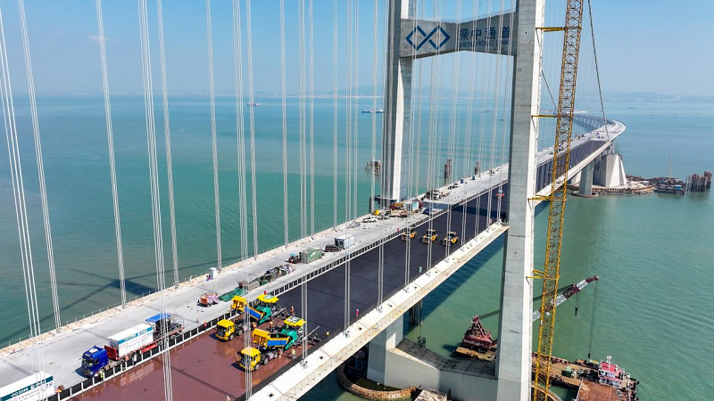 11月1日,由保利國際下屬保利長大承建的國家重大工程深中通道伶仃洋大橋開始鋼橋面鋪裝,當(dāng)天順利完成主橋左幅鋼橋面首次鋪裝施工,單日鋪裝面積達(dá)25772平方米,繼今年1月中山大橋單日鋪裝兩創(chuàng)世界紀(jì)錄后,第三次刷新由保利長大創(chuàng)造的鋼橋面熱拌環(huán)氧瀝青單日鋪裝世界紀(jì)錄。