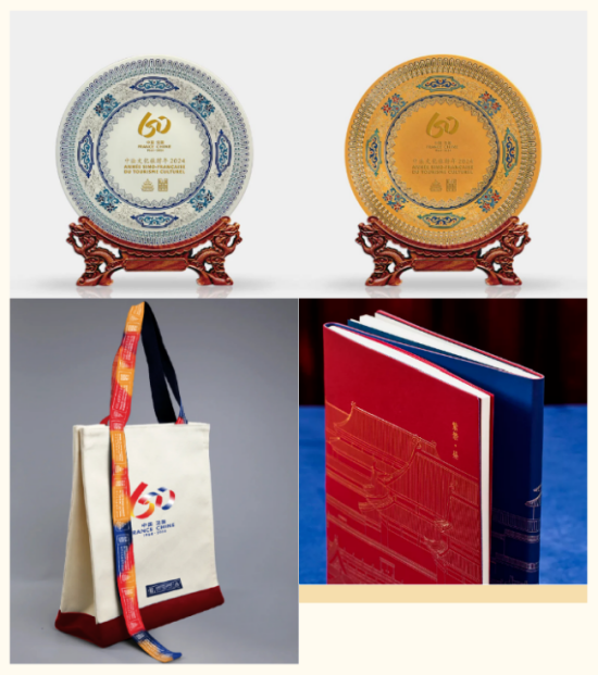 保利工藝積極推介中國(guó)傳統(tǒng)工藝精髓,下屬中藝東方為中國(guó)駐法大使館提供“中法建交60周年”主題相關(guān)各級(jí)外事贈(zèng)禮保障服務(wù),傾情推出中國(guó)傳統(tǒng)吉祥紋飾擺盤(pán)、筆記本等文創(chuàng)產(chǎn)品禮盒,以禮寄寓中法兩國(guó)深厚情誼。