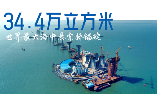 為確保工程質(zhì)量,保利長大自主研發(fā)關(guān)鍵技術(shù),打造世界最大海中懸索橋錨碇,單個錨碇混凝土方量約34.4萬立方米,重量高達100萬噸,在海中立下“定海神針”。