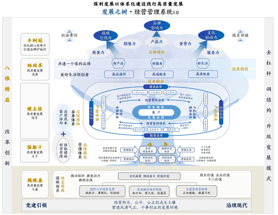 保利發(fā)展從服務(wù)國(guó)家戰(zhàn)略、提高核心競(jìng)爭(zhēng)力、增強(qiáng)核心功能及發(fā)揮“三個(gè)作用”的角度出發(fā),創(chuàng)新性地構(gòu)建出一套具有保利特色的“發(fā)展之樹”經(jīng)營(yíng)管理系統(tǒng),聚焦“穩(wěn)根基”、“強(qiáng)軀干”、“健主枝”、“結(jié)碩果”、“豐樹冠”五個(gè)部分,將“八維精益”管理理念有機(jī)融入,致力于對(duì)組織能力和治理水平進(jìn)行全面升級(jí),引領(lǐng)公司高質(zhì)量發(fā)展。