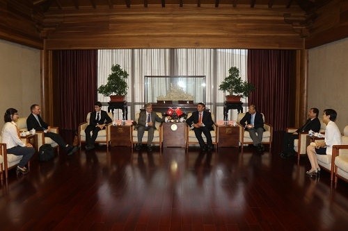 On July 22th, Chairman Xu Niansha met with Jean-Jacques de Dardel, Ambassador of Switzerland at New Poly Plaza in Beijing. Both sides discussed on further collaboration in real estate and culture industries. Vice President Wang Lin attended the meeting.