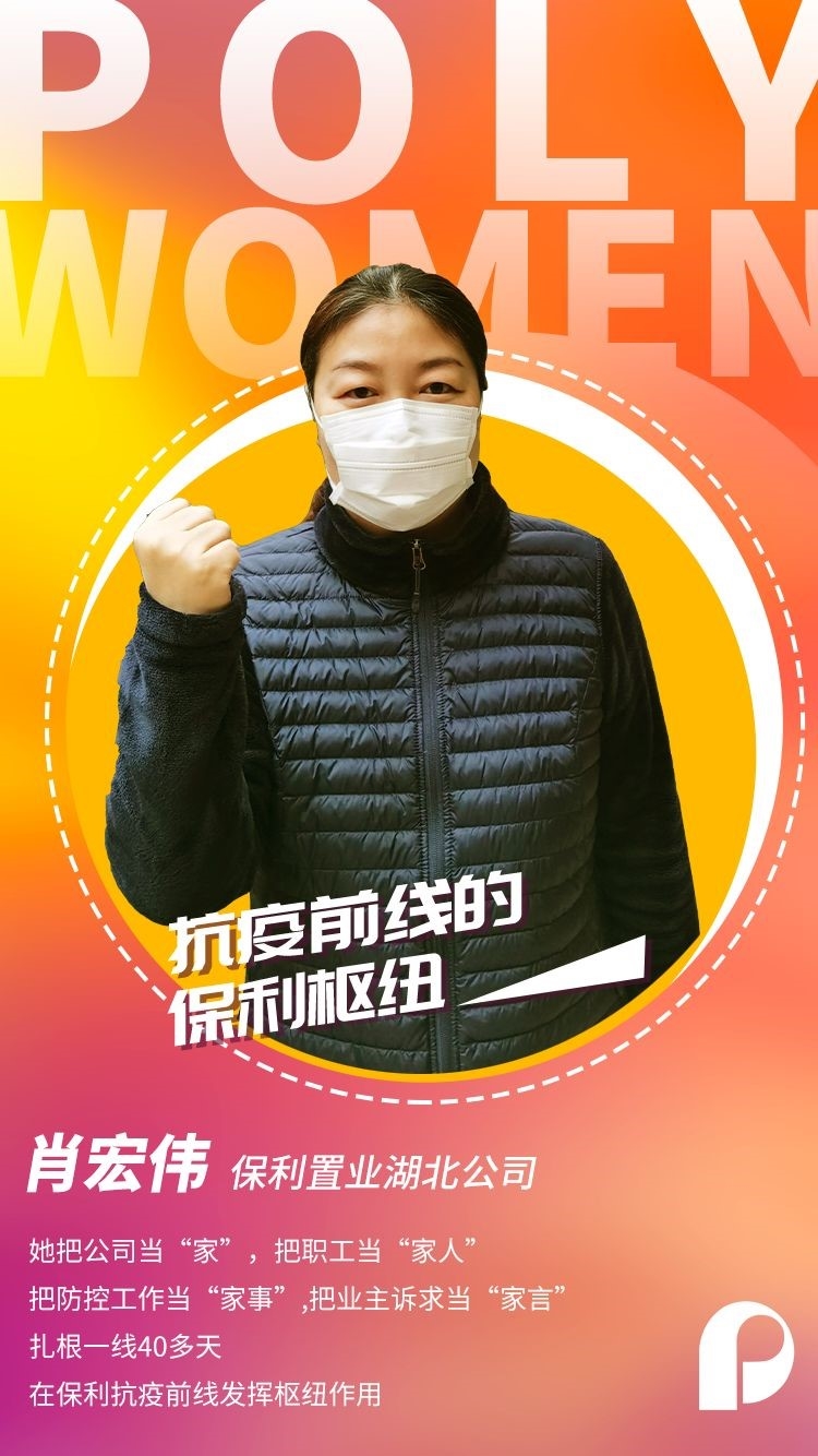 Xiao Hongwei, working in Hubei’s company of Poly Real Estate Group Co., Ltd., regarded the company as “home”, the employees as “family”, the prevention and control work as “housework”, and the needs of property owners as “the request from family members”. She has worked at the front line for 40 days, playing a pivotal role at the front line.