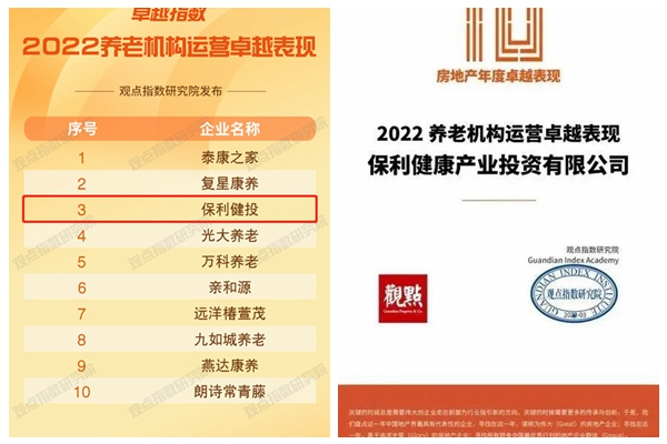 Poly Health Ranks Third on the List of “2022 Excellent Operation of Elderly Care Institutions”